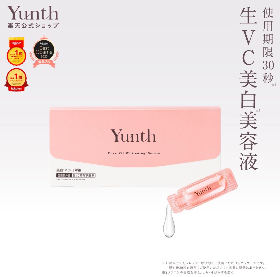 そんな悩みをまるっと解決してくれるのが、SNSや楽天でいま爆発的に人気の Yunth(ユンス)の「生VC美白美容液」 です!